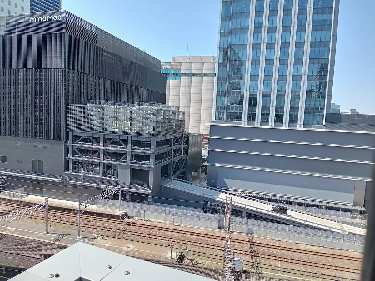 ①広島駅ビル・ミナモアが見えると、西(山口)方面へ進みます。