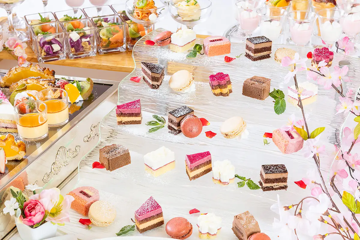 同ビュッフェは、花の便りが届く季節にあわせて実施される期間限定イベントです。春を感じる彩り豊かな料理を30種類以上取り揃え、見た目にも華やかなメニューで来店客を迎えます。