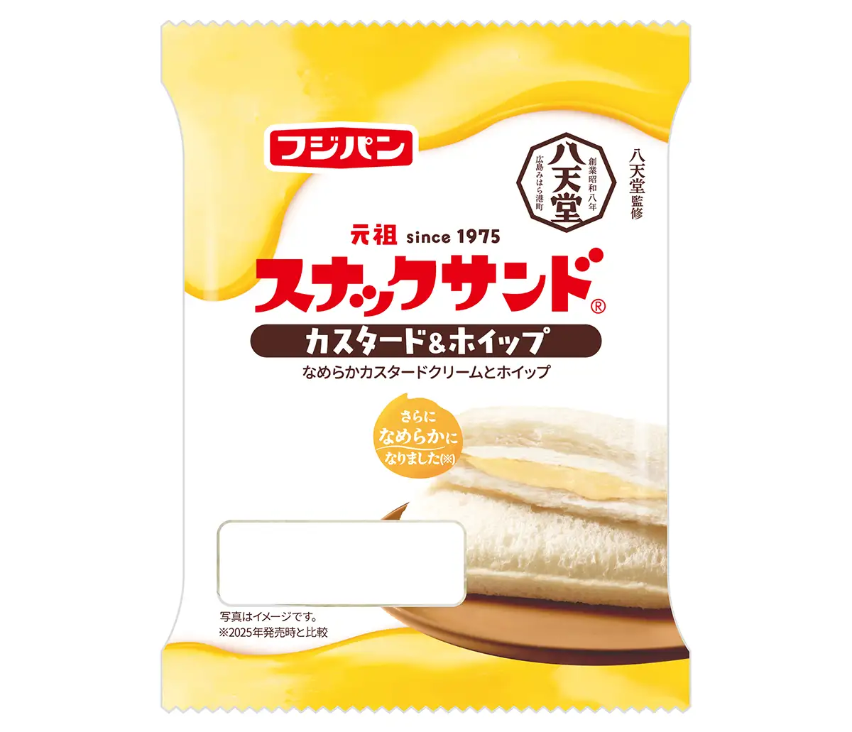 ふんわりとした食パンに、なめらかなカスタードクリームと口どけの軽いホイップをダブルでサンド。前回発売時よりクリームの品質を改良し、やさしい味わいで幅広いシーンに適した商品となっています。