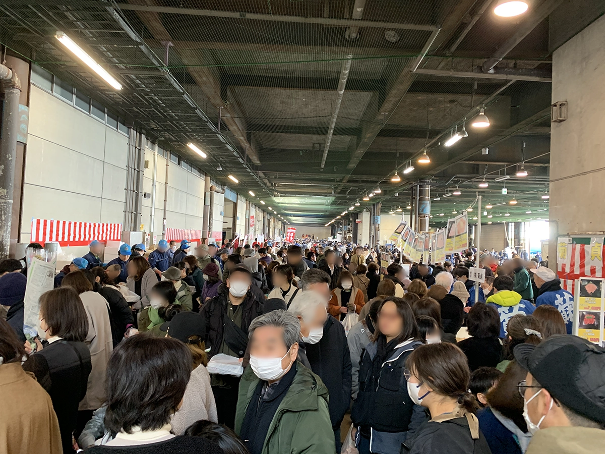 市場まつりは毎年多くの来場者でにぎわう人気イベントのため、会場内は終日大変な混雑が予想されます。とりわけマグロ解体ショーや話題のグルメブースの周辺には多くの人が集まり、行列ができることもしばしばあります。そのため、目当てのグルメやお土産が早い時間帯に売り切れてしまうケースも少なくありません。