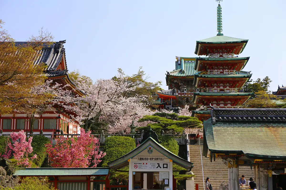期間中は、境内に咲き誇る桜を眺めながら、ゆったりと散策を楽しむことができます。歴史ある寺院の趣と瀬戸内海の景観が調和した空間は、非日常の癒やしを感じられる特別なひとときを演出します。