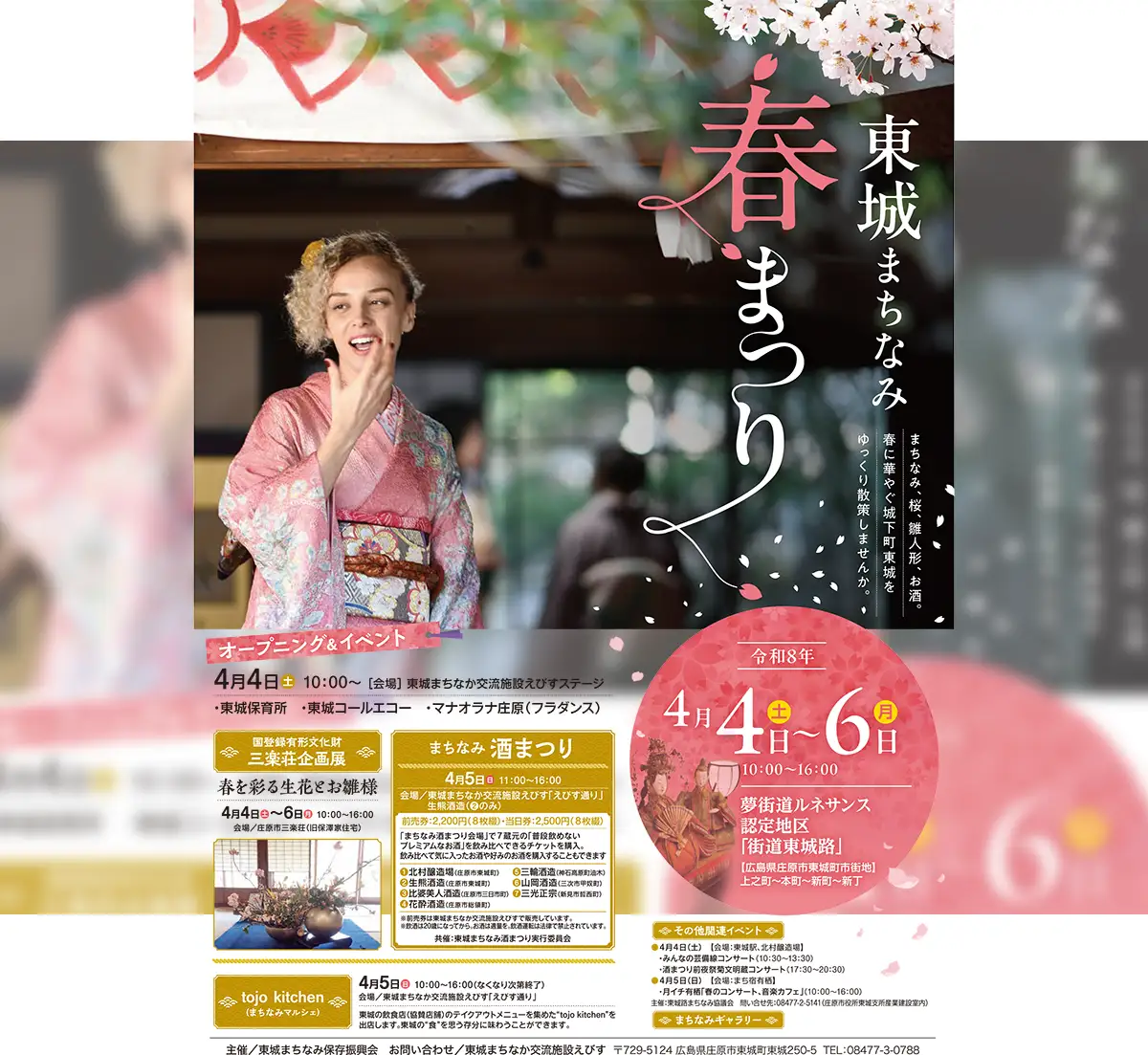 広島県庄原市東城町の夢街道ルネサンス認定地区「街道東城路」で、2026年4月4日(土)から6日(月)までの3日間に「東城まちなみ春まつり2026」が開催されます。
