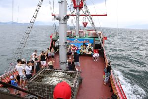2018年の元旦に、広島マリーナホップから出航する海賊船「海王」が初日の