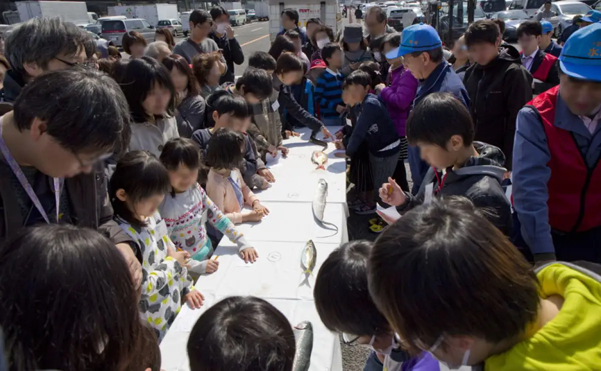 実際の魚で子どもたちがせりを体験。お小遣い程度で貴重な経験ができます。