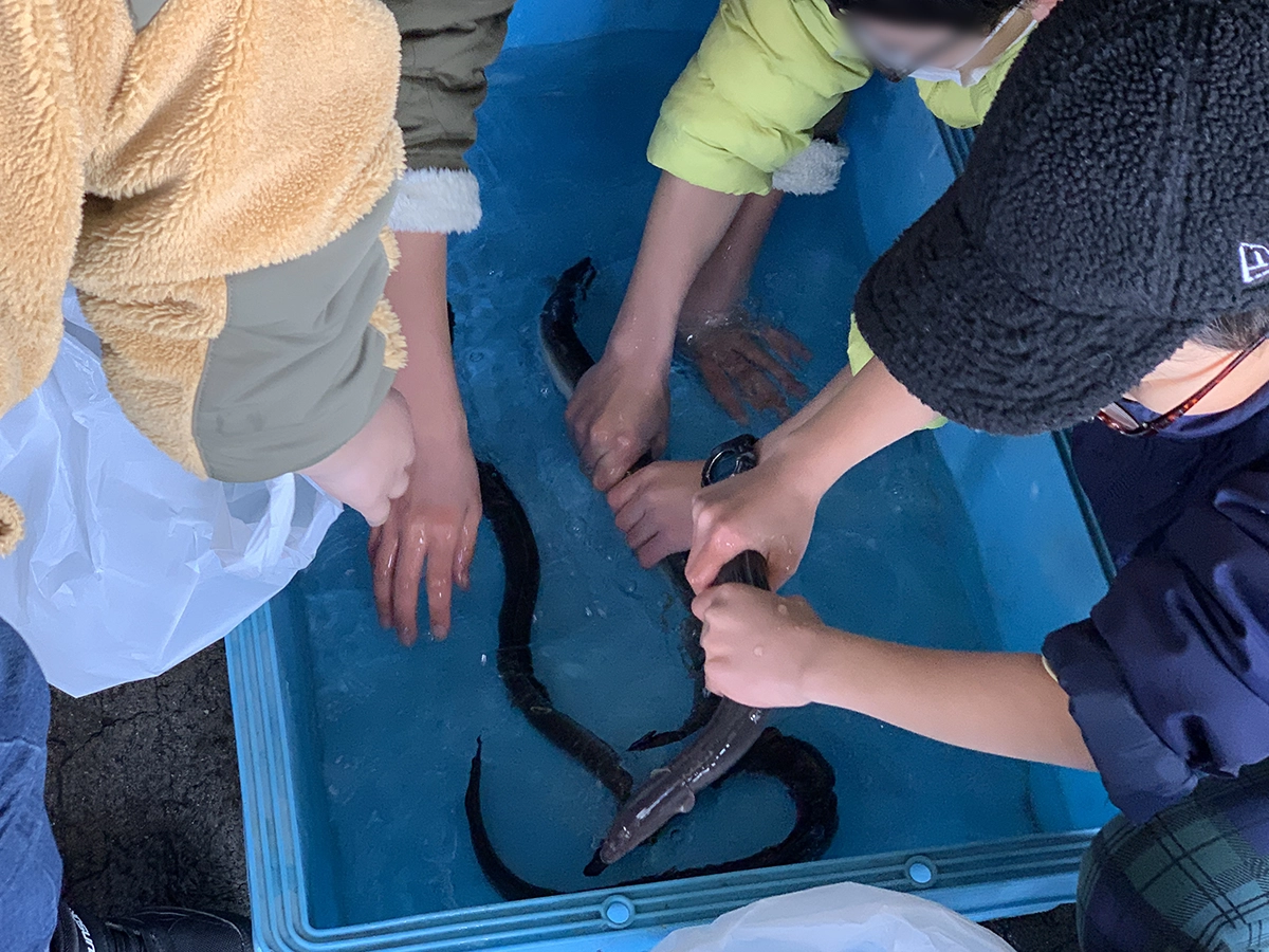 水槽に泳ぐ活きのいいうなぎを手掴みしてみよう!