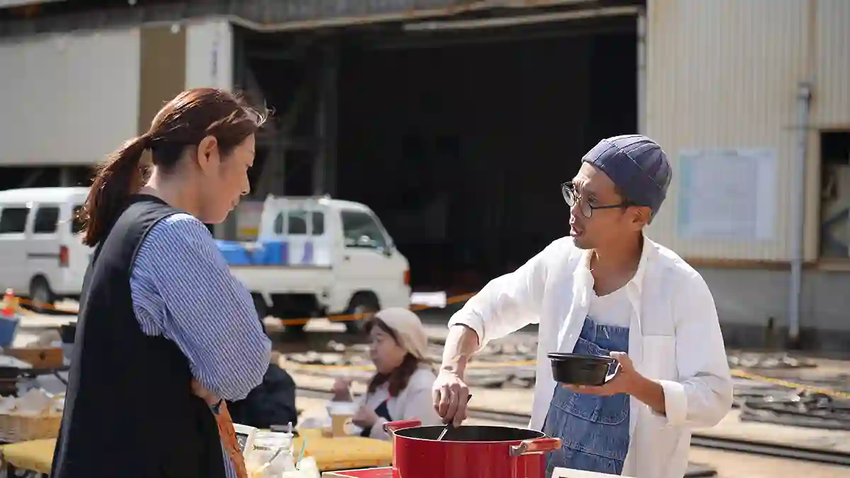 巨大クレーンのもとで、グルメやショッピングを満喫できるマルシェを開催。因島を中心に美味しいグルメブースが勢揃い!家族みんなで楽しめる雰囲気のイベントです。