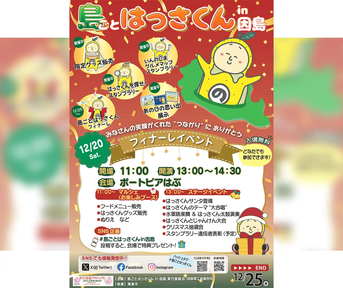 尾道市・因島を舞台に多くの来場者を楽しませてきた地域イベント「島ごとはっさくん in 因島」が、2025年12月20日(土)にフィナーレイベントを迎えます。