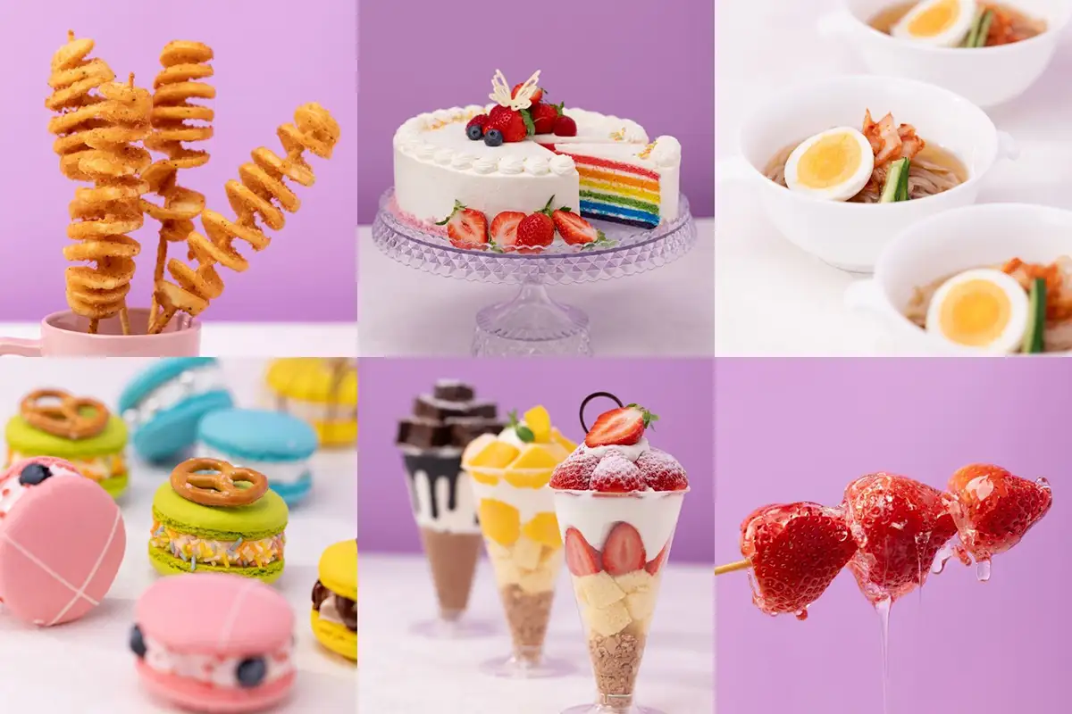 会場には、レインボーケーキ、トゥンカロン、クルンジ、タルゴナミルクティーなど、日本でも話題の韓国スイーツが一堂に集結。さらに、実演コーナーでは出来立てを楽しめる「タンフル(苺飴)」も提供されます。