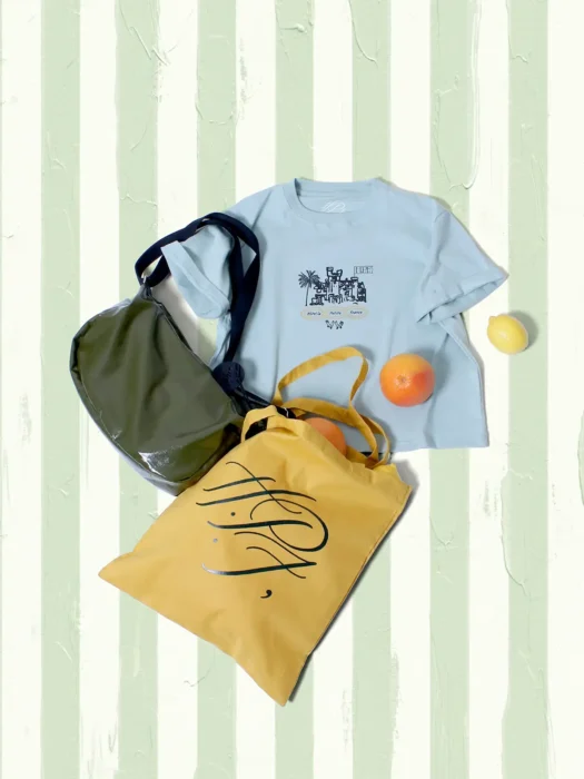 旅先のニューススタンドや蚤の市、ミュージアムショップに並ぶプロダクトから着想を得た知的で遊び心あふれるスーベニアコレクション。パリの路地裏のキオスクや北欧の美術館ショップで見つけたようなキャップやTシャツを、「H.P.F,」のロゴを軸にデザインしています。