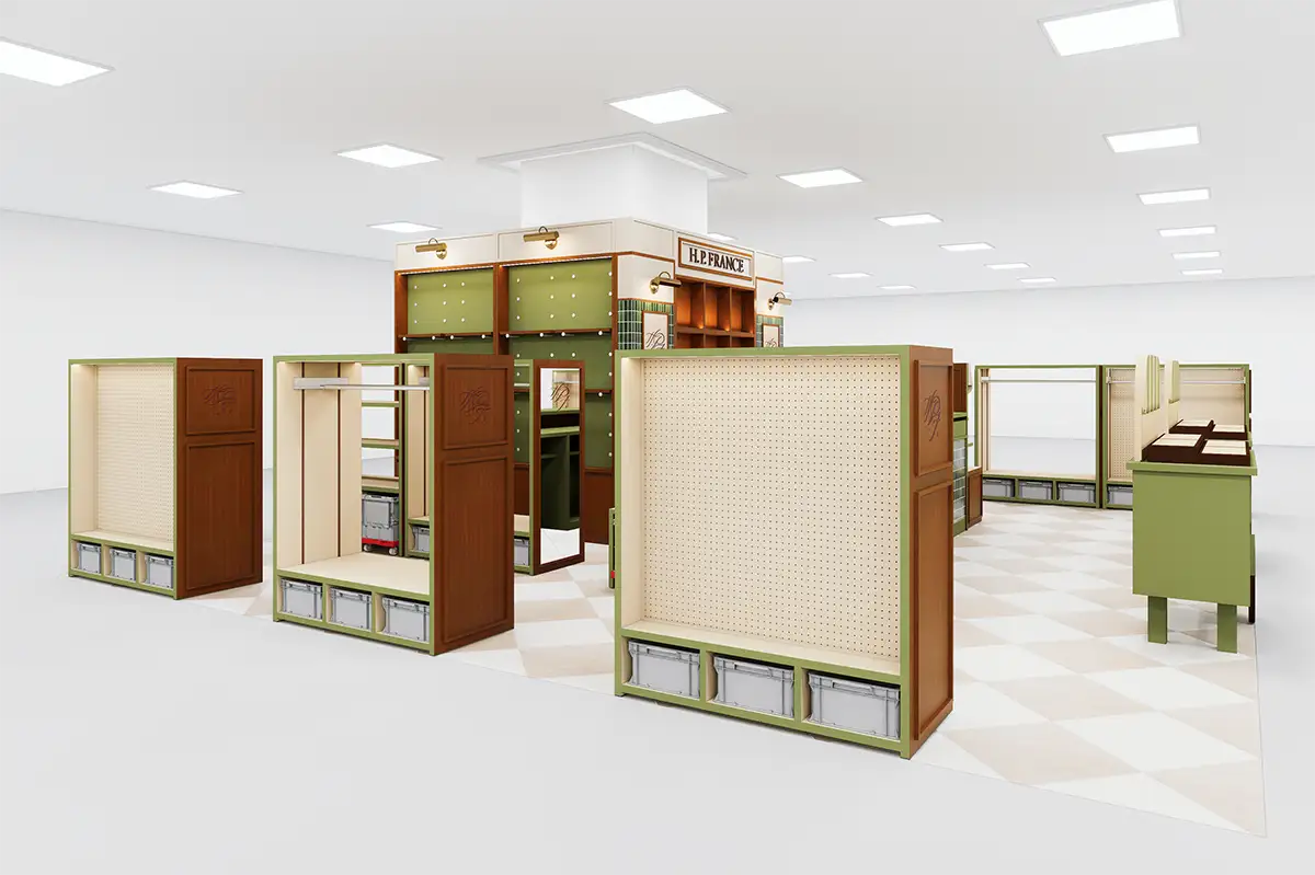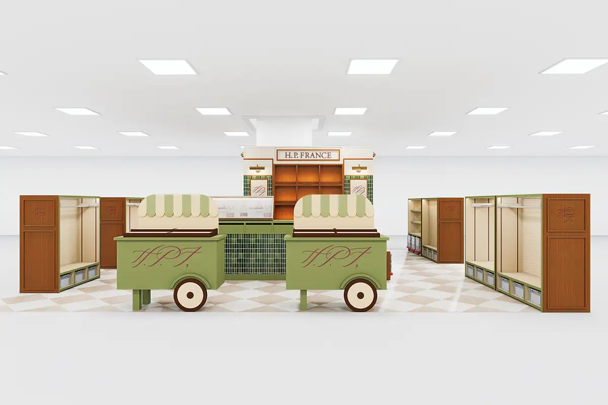 パリのマルシェやキオスクのような回遊性のある構成で、思いがけない出会いを演出。商品だけでなく選ぶ時間そのものも楽しめる空間を作り出します。