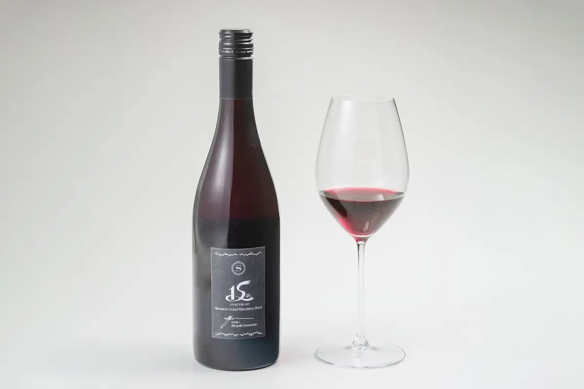 ディナータイムにおいて、1人10,000円(税金・サービス料込)以上の利用者には、15周年記念オリジナルラベルの赤ワインをグラス1杯プレゼントされます。