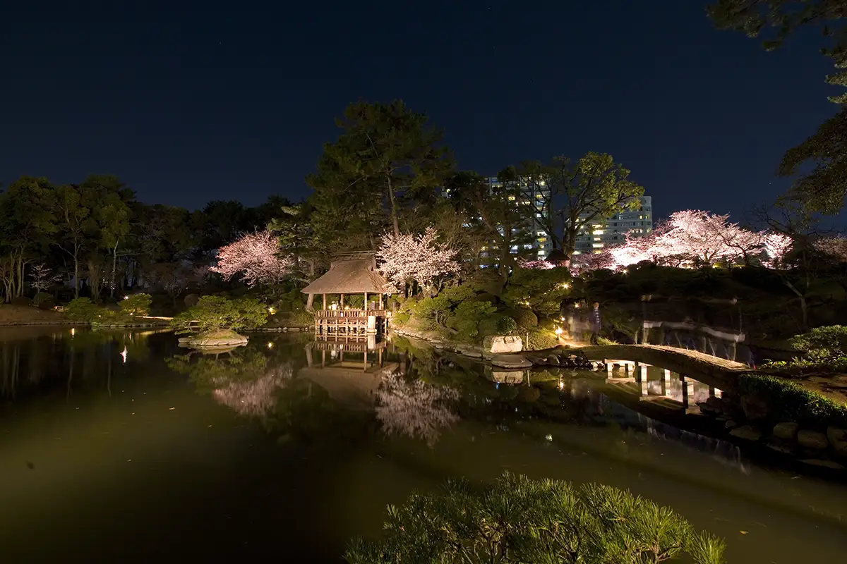 広島市中心部にある人気観光スポット・縮景園にて、春の風物詩として親しまれている「夜桜ライトアップ」が、2026年3月27日(金)から4月5日(日)の期間で開催されます。